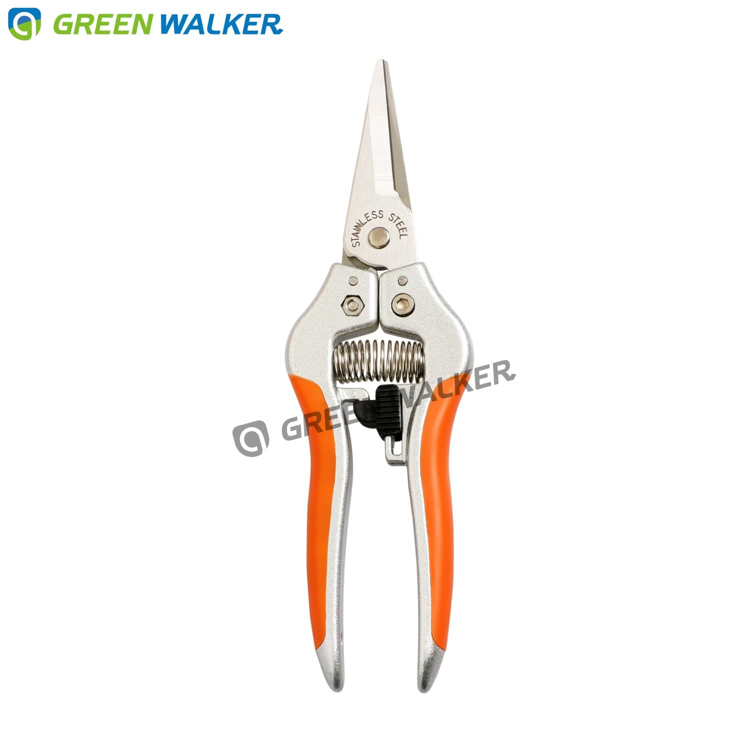 The GREEN WALKER FS3120 aluminum fruit scissors are our high level fruit pruner series. The blades are made of high quality Japanese stainless steel and its handle are made of aluminum with soft TPR grip. This fruit scissors are great harvesting trimming scissors for Garden, Fruits and Grapes.