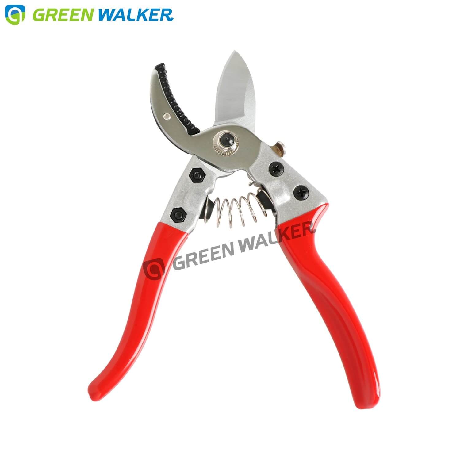 GREEN WALKER AP108 Anvil Secateurs feature a curved blade which combine anvil cutting style with bypass type to create a comfortable and long lasting pruning shears. Durable enough for use with even the hardest wood. Curved blade prevents the branch from slipping out.