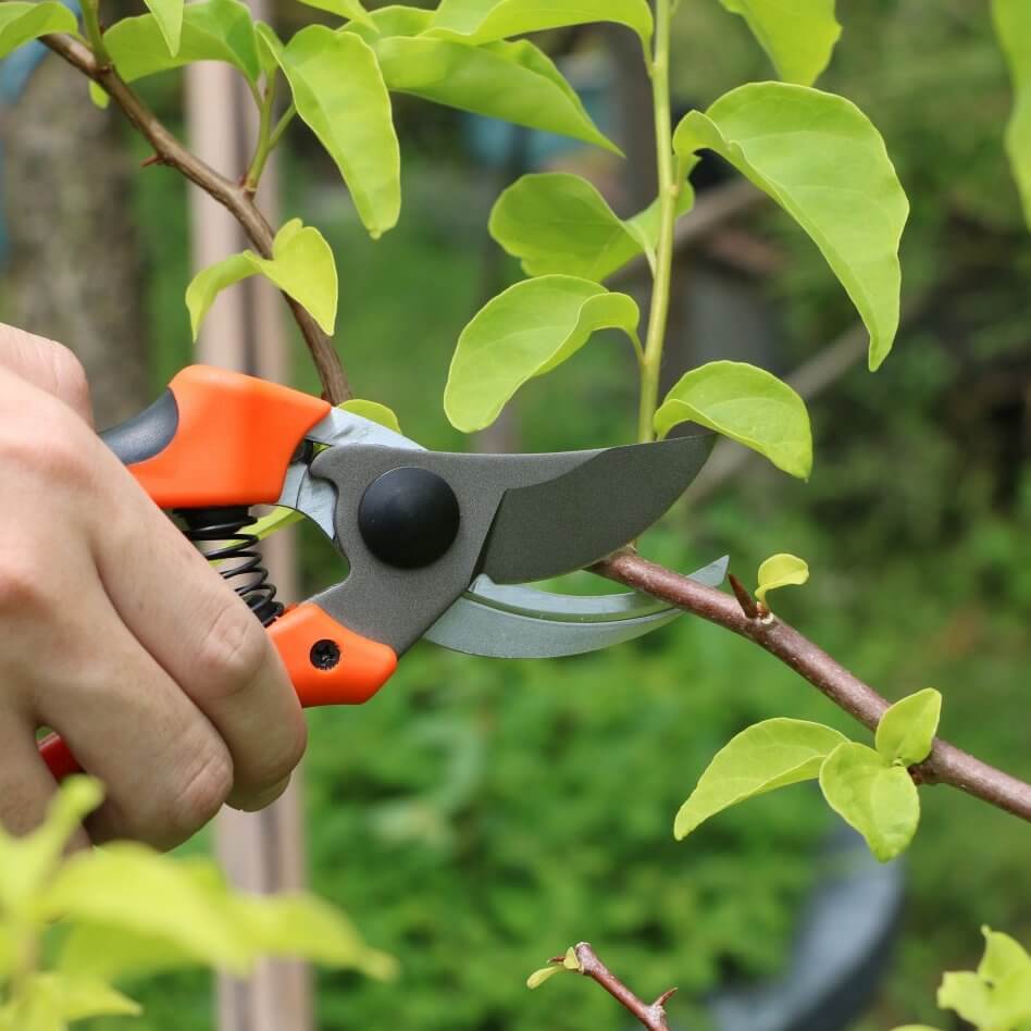 Bypass pruning shears produce a clean cut that is gentle on the plant, as the blades glide past each other. They are ideally suited for finer work and use with delicate or fibrous woods that require a cut with less cutting force. Their design allows shoots to be cut off flush at the base.