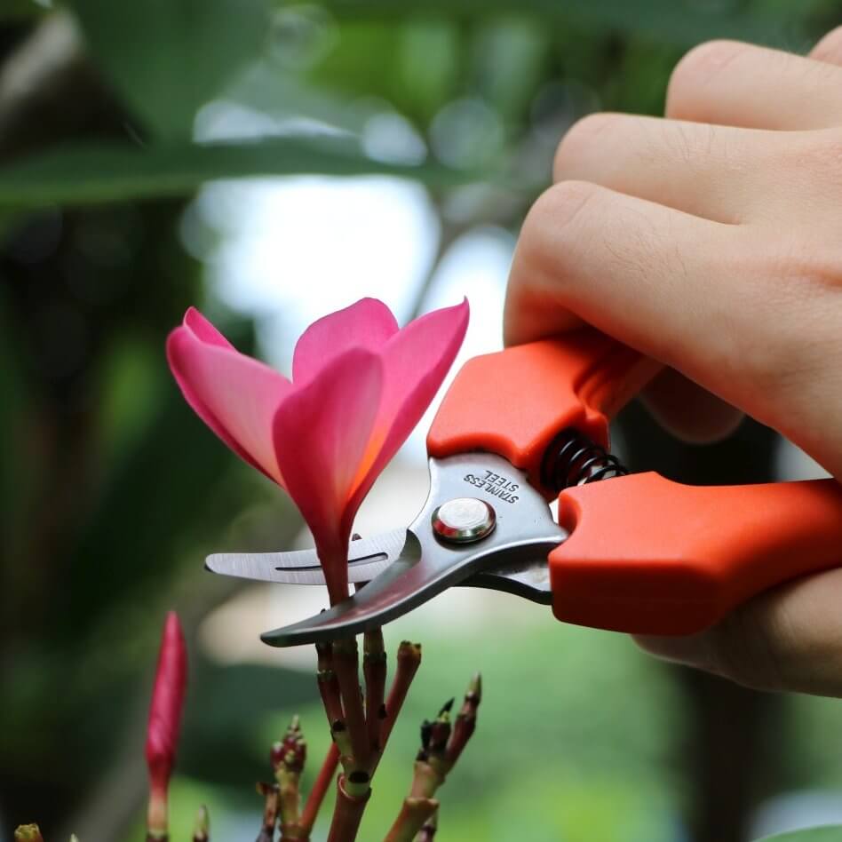 - The tips of the curved blades are rounded to avoid damaging nearby flowers or fruit.