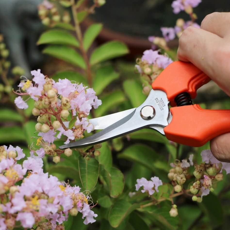 - The tips of the curved blades are rounded to avoid damaging nearby flowers or fruit.